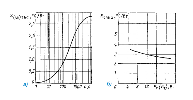 ![]() а) — переходное тепловое сопротивление контактная поверхность охладителя - охлаждающая среда при естественном охлаждении и рассеиваемой мощности 16 Вт |