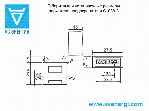 Держатели серии S1038 применяются для установки автомобильных предохранителей различных габаритов (стандартные S1035-2, S1035-3, S1035-4, мини S1035-1, макси S1036-1, S1036-2) непосредственно на проводе.