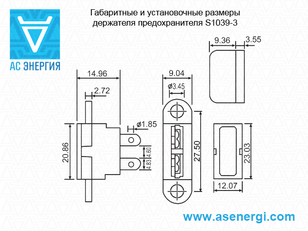 Держатели серии S1039 применяются для установки стандартных автомобильных предохранителей (S1035-2, S1035-3, S1035-4) на плату или кузов автомобиля с помощью защелок или винтов.