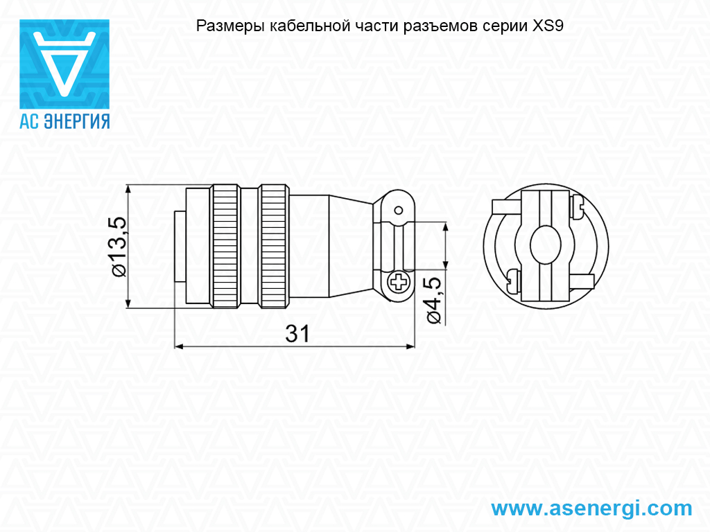 Размеры разъемов серии XS9: