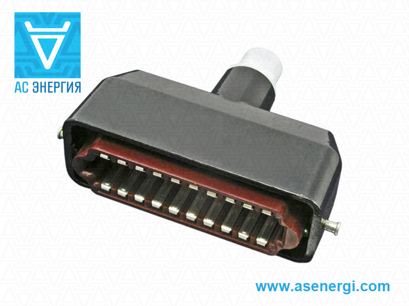 Разъем РШАГКП-20-1 – 20-ти контактная кабельная розетка. Разъем имеет габаритные размеры: 87×32,5×89 мм. Рабочая токовая нагрузка на каждый контакт – до 6 А, на соединитель в целом – до 120 А при напряжении до 700 В. Предназначен для работы в электрических цепях постоянного, переменного (частотой до 3 МГц) и импульсного тока.