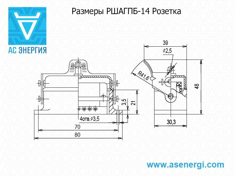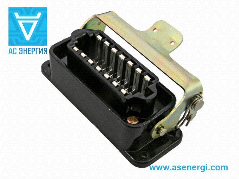 Разъем РШАГПБ-14 – 14-ти контактная приборная розетка. Разъем имеет габаритные размеры: 80×39×48 мм. Рабочая токовая нагрузка на каждый контакт – до 6 А, на соединитель в целом – до 84 А при напряжении до 700 В. Предназначен для работы в электрических цепях постоянного, переменного (частотой до 3 МГц) и импульсного тока.