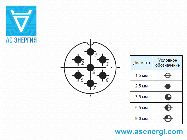 Разъем ШР28П7НГ9 – 7-ми контактная негерметичная кабельная вилка серии ШР, с прямым выводом под неэкранированный кабель и патрубком. Вилка имеет проходной диаметр 33 мм, обеспечивает соединение семи контактов диаметром 2,5 мм с рабочей токовой нагрузкой до 25 А на каждый и до 155 А на соединитель в целом при напряжении переменного и постоянного тока до 850 В.