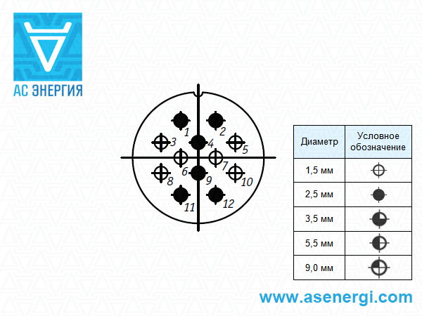 Схема расположения контактов и параметры ШР32П12НГ1: