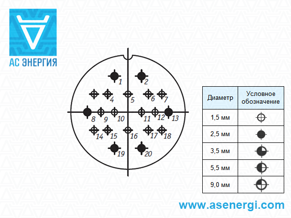 Разъём ШР48П20ЭГ1 относится к группе цилиндрических низкочастотных низковольтных разъёмов.