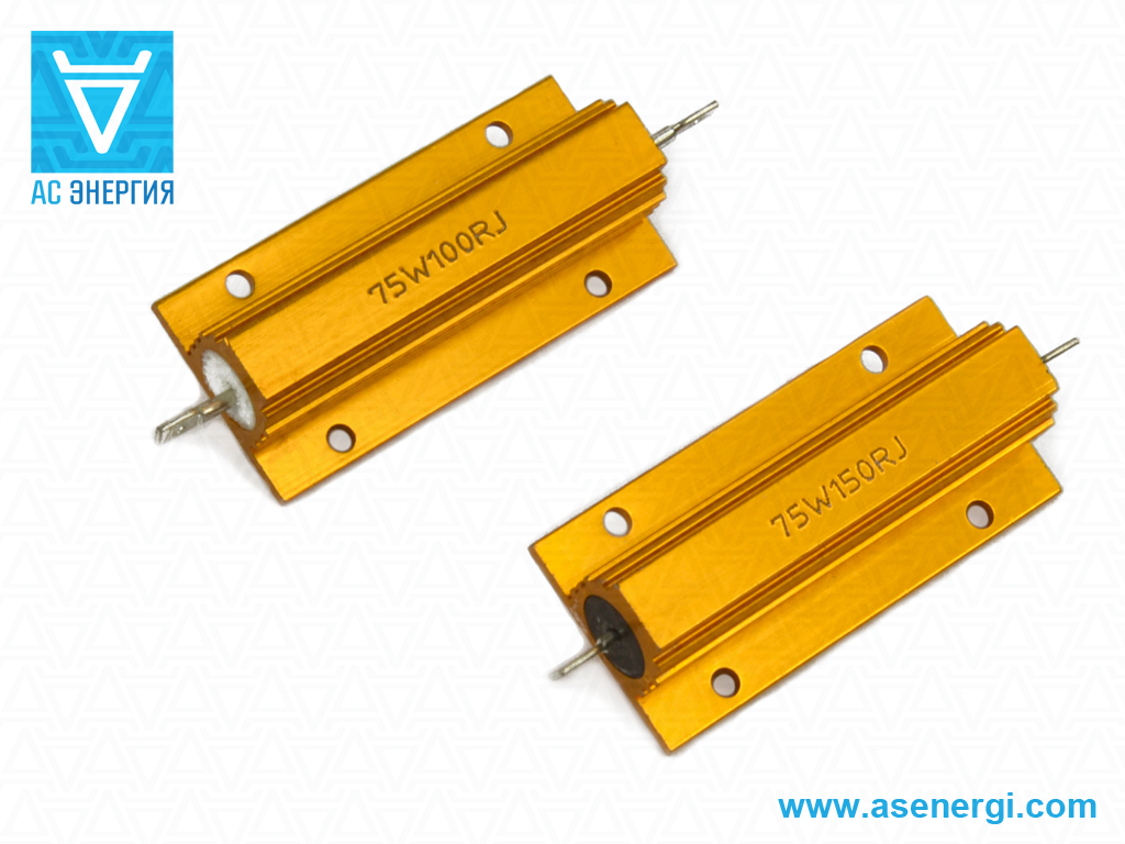 Мощные силовые резисторы AH 75W в алюминиевом корпусе, ещё их называют как мощные резисторы AHA-75, HS75, RX24 75W, AHR (Aluminum housed resistor) – постоянные проволочные резисторы, номинальное сопротивление 0,01 Ом – 50 кОм, рассеиваемая мощность – 75Вт. Резисторы способны рассеивать высокие активные и реактивные мощности в ограниченном пространстве при относительно низкой температуре поверхности корпуса. Выделяемая мощность быстро рассеивается в виде тепла через алюминиевый корпус и отводится в радиатор.