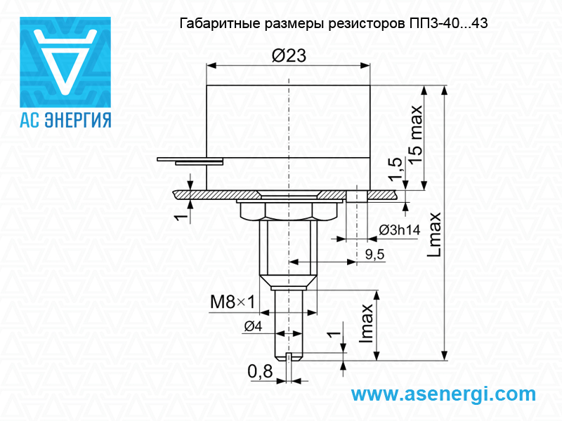 Габаритные размеры одинарных регулировочных резисторов ПП3: