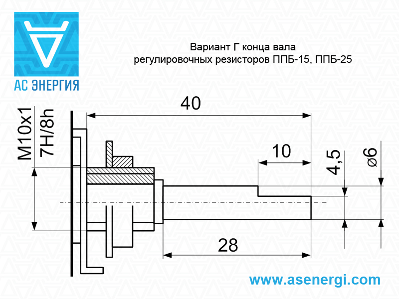 Габаритные размеры переменных регулировочных резисторов ППБ-15, ППБ-25:
