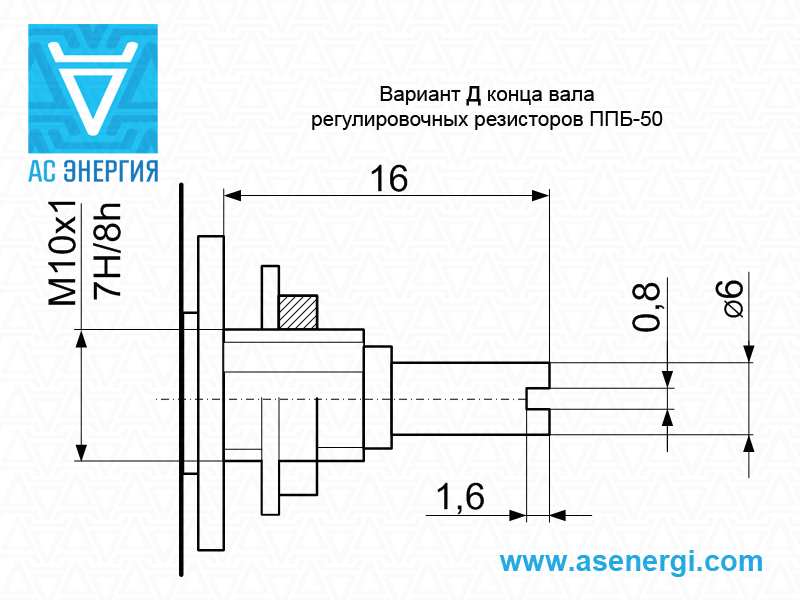 Габаритные размеры переменных регулировочных резисторов ППБ-50: