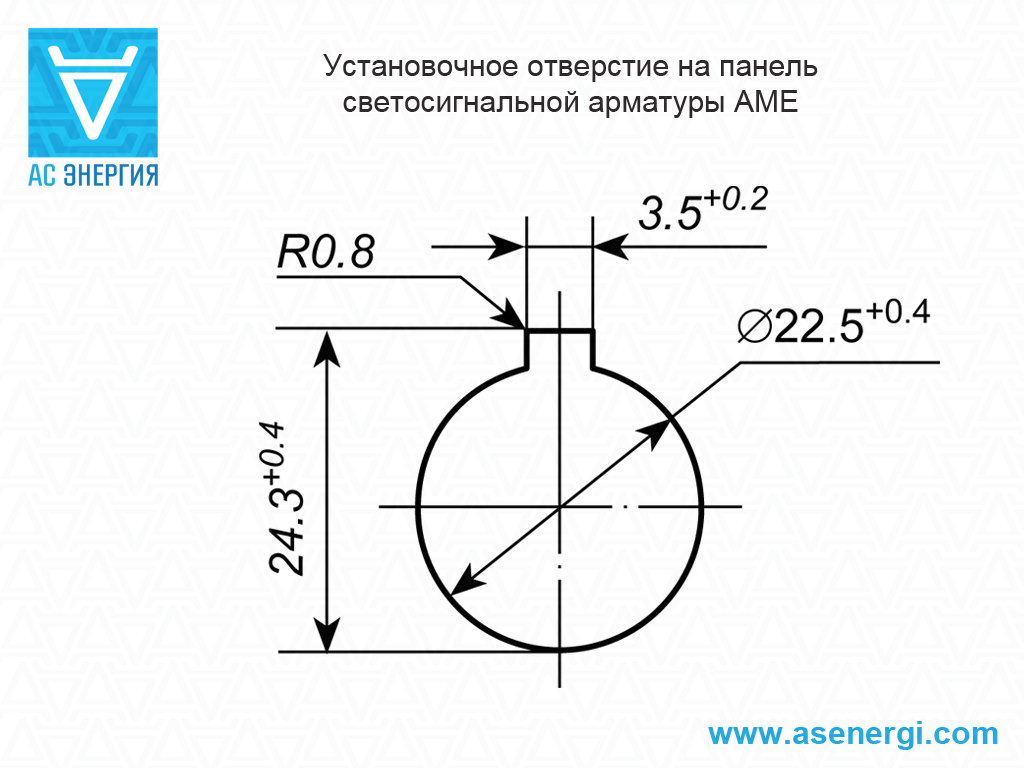 Сигнальная арматура AME фиксируется на панели с помощью резьбы и крепежной гайки. Монтажный диаметр М22.