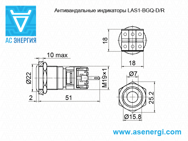 LAS1-AGQ-D/R | 161,80 руб. | Ø19 мм | ![]() |