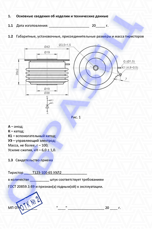При поставке тиристоров при необходимости предоставляем паспорт качества и сертификат соответствия.