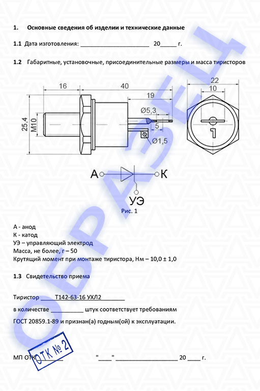 При поставке тиристоров при необходимости предоставляем паспорт качества и сертификат соответствия.