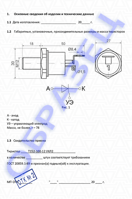 При поставке тиристоров при необходимости предоставляем паспорт качества и сертификат соответствия.
