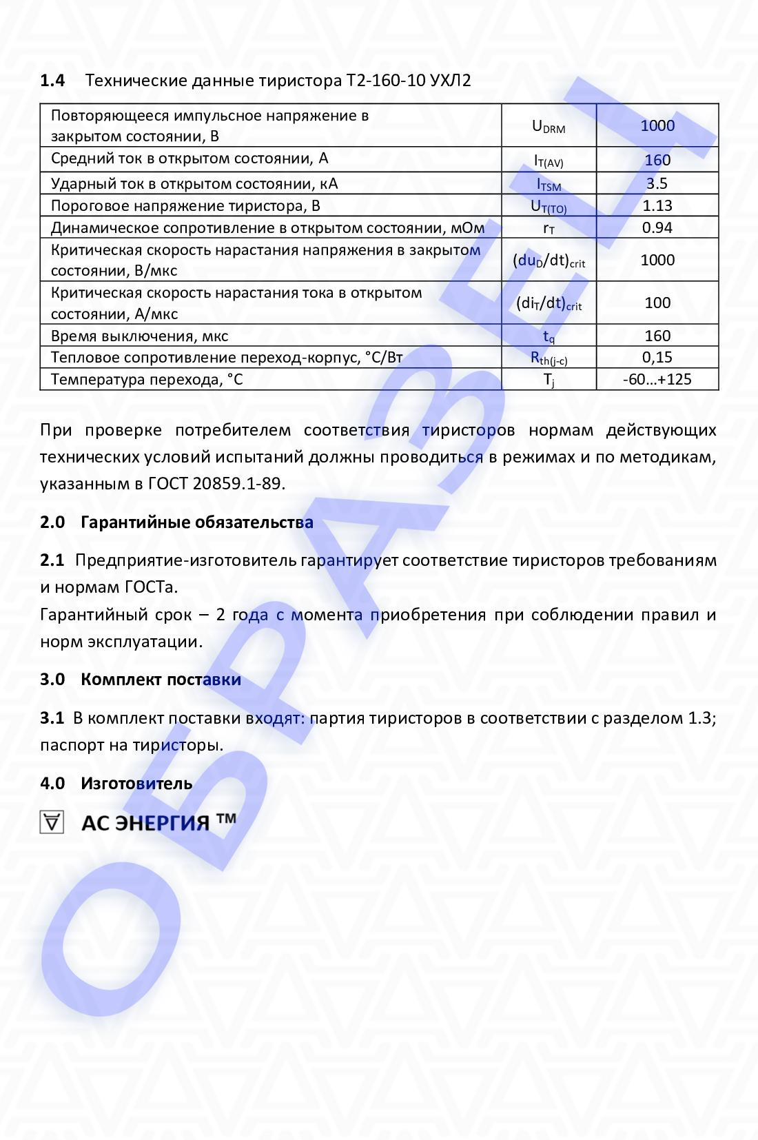 Окончательная цена на тиристоры Т2-160 зависит от класса, количества, сроков поставки, производителя, страны происхождения и формы оплаты.