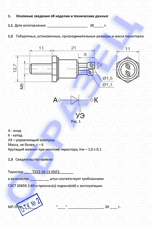 При поставке тиристоров при необходимости предоставляем паспорт качества и сертификат соответствия.