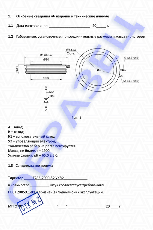 При поставке тиристоров при необходимости предоставляем паспорт качества и сертификат соответствия.