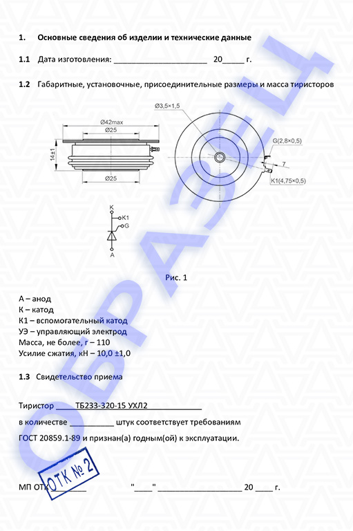 При поставке тиристоров при необходимости предоставляем паспорт качества и сертификат соответствия.
