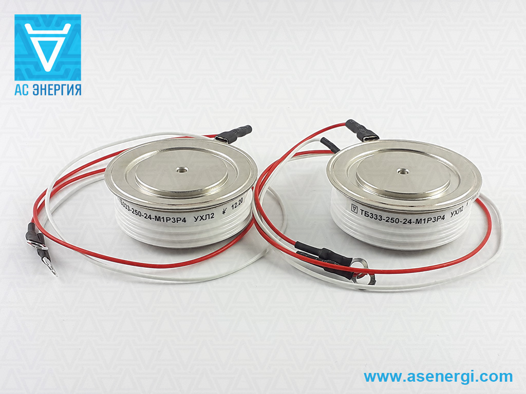 Тиристоры быстродействующие ТБ333-250 (TF 333-250) - таблеточные тиристоры, регулируют и преобразовывают постоянный и переменный ток до 250 ампер частотой до 10кГц в цепях с напряжением 1600В - 2400В.