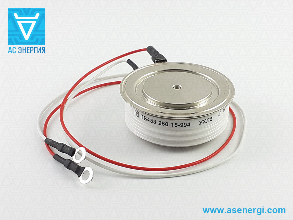 Тиристоры быстродействующие ТБ433-250 (TF 433-250) – таблеточные тиристоры, регулируют и преобразовывают постоянный и переменный ток до 250 ампер частотой до 10кГц в цепях с напряжением 1000В - 1500В (10-15кл).