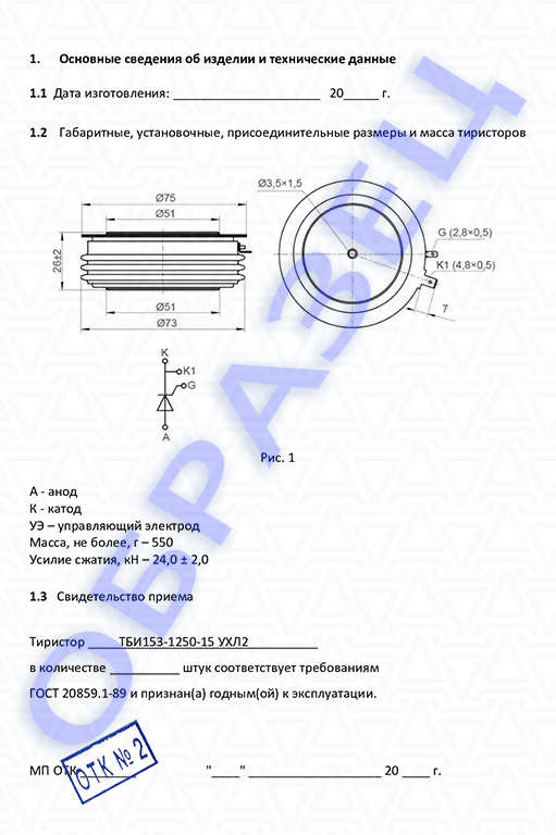 При поставке тиристоров при необходимости предоставляем паспорт качества и сертификат соответствия.