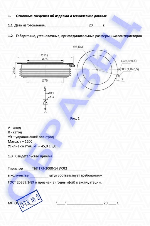 Паспорт тиристор ТБИ173-2000:
