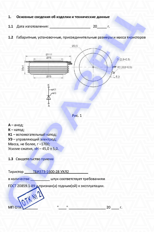 При поставке тиристоров при необходимости предоставляем паспорт качества и сертификат соответствия.
