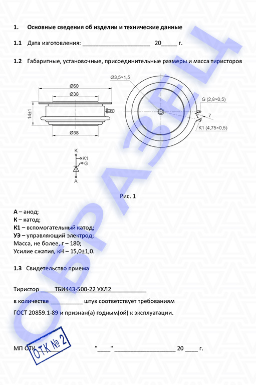 При поставке тиристоров при необходимости предоставляем паспорт качества и сертификат соответствия.