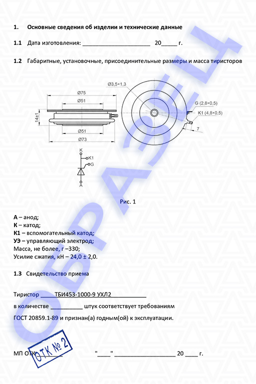 Часто запрашиваемые номиналы тиристоров: ТБИ453-1000-3, ТБИ453-1000-4, ТБИ453-1000-5, ТБИ453-1000-6, ТБИ453-1000-7, ТБИ453-1000-8, ТБИ453-1000-9, TFI 453-1000-3, TFI 453-1000-4, TFI 453-1000-5, TFI 453-1000-6, TFI 453-1000-7, TFI 453-1000-8, TFI 453-1000-9.