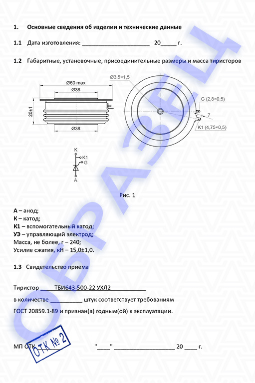 При поставке тиристоров при необходимости предоставляем паспорт качества и сертификат соответствия.