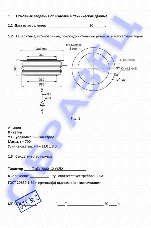 Паспорт тиристор Т163-2000: