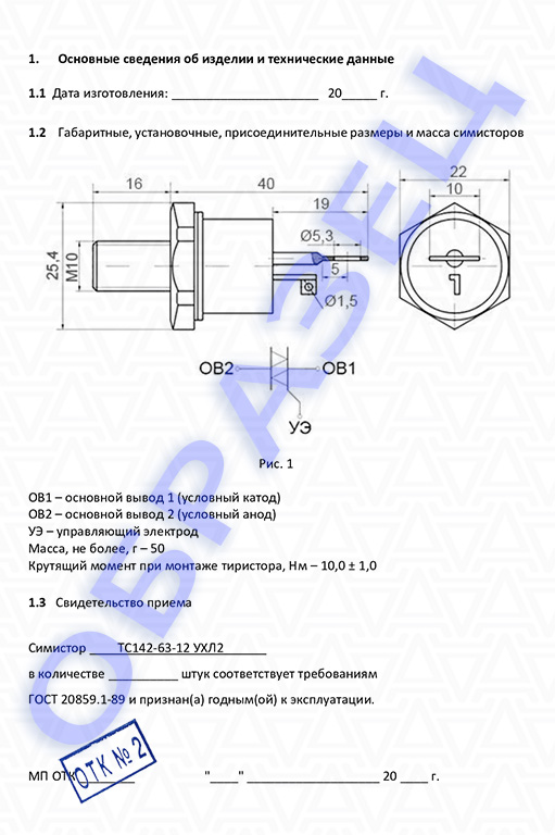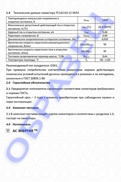 Расшифровка маркировки (обозначений) симисторов ТС142-63 УХЛ2: