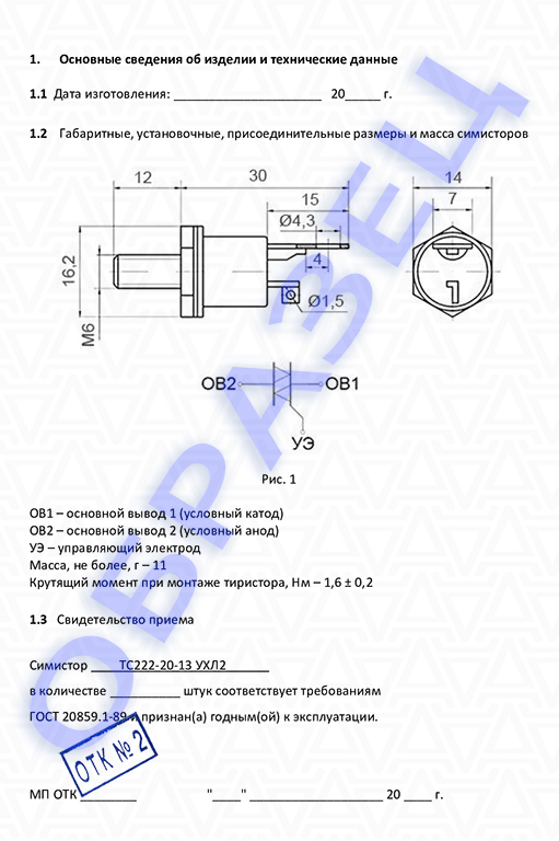 Расшифровка маркировки (обозначений) симисторов ТС222-20-13 УХЛ2: