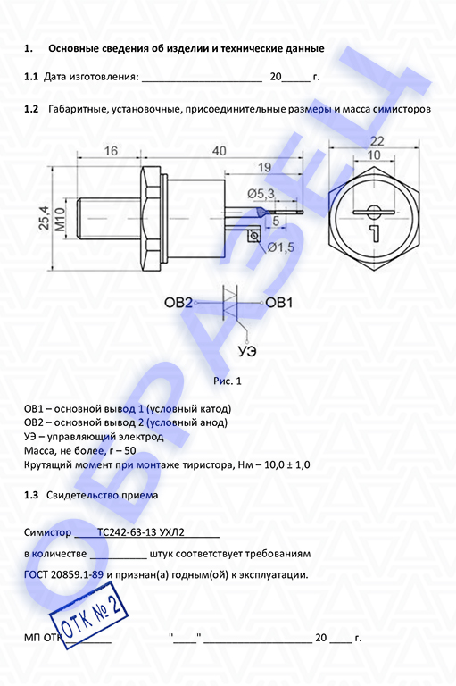 Расшифровка маркировки (обозначений) симисторов ТС242-63-13 УХЛ2: